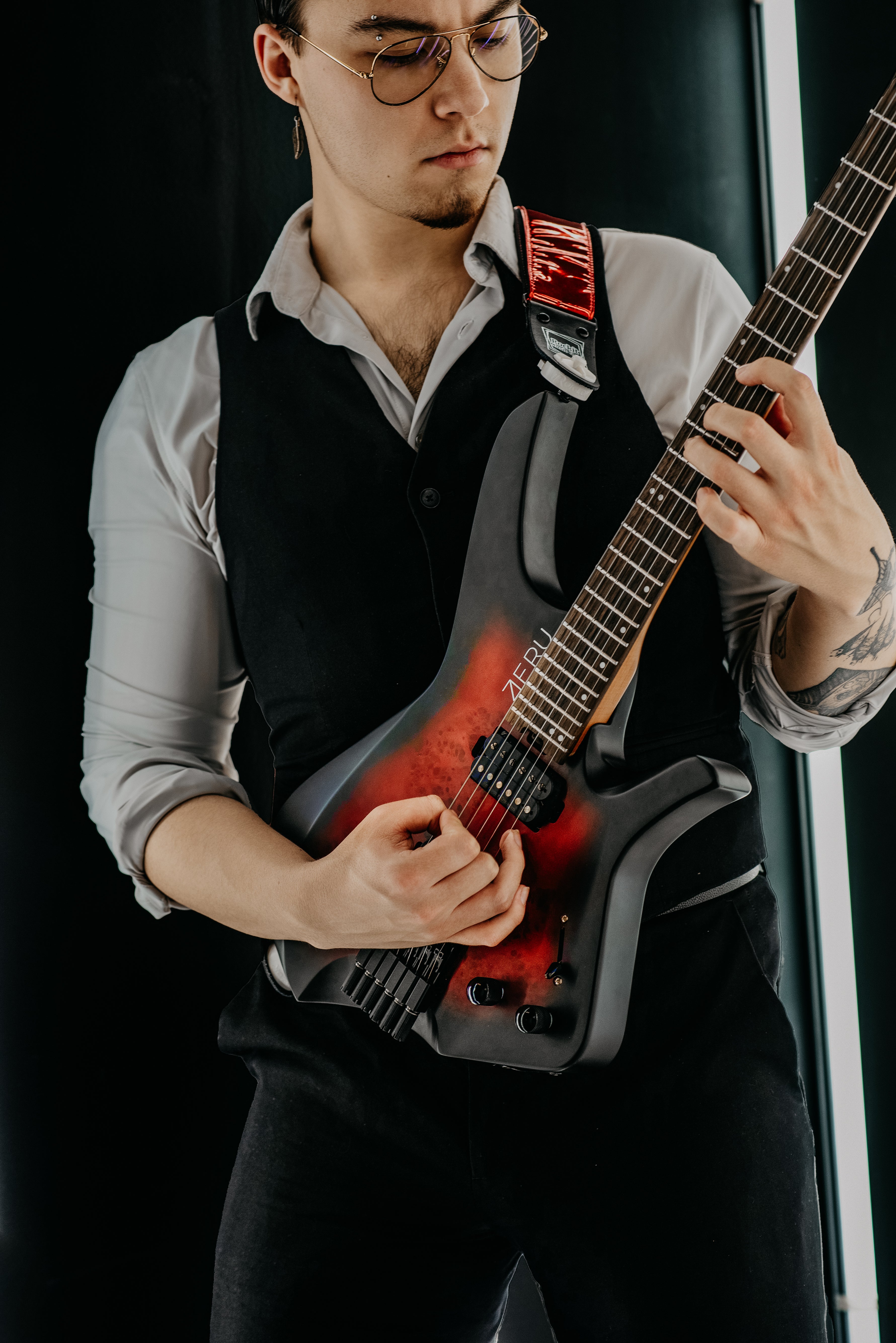 With his guitar in hand and passion in mind, Justus Hajas is a young artist who aims to ignite a fire. At just 20 years old, he is a virtuosic self-expressionist with an innovative vision for music. To Justus, music is a powerful tool for healing, learning, and confronting personal traumas. Drawing from his own experiences, he has created a unique and accessible blend of genres, incorporating elements of modern rock and experimental guitar into his sound. Born out of Brantford Ontario, he got accepted into Berklee College of music, Justus instead completed his college degree on a full scholarship for guitar performance at the prestigious school Metalworks Institute. With the Launch of the VOID Series one artist came to mind that would use all the capabillities that this guitar had to offer. After many talks about the guitar this is what we settled on for the first Justus Hajas Signature VOID Model ZERU